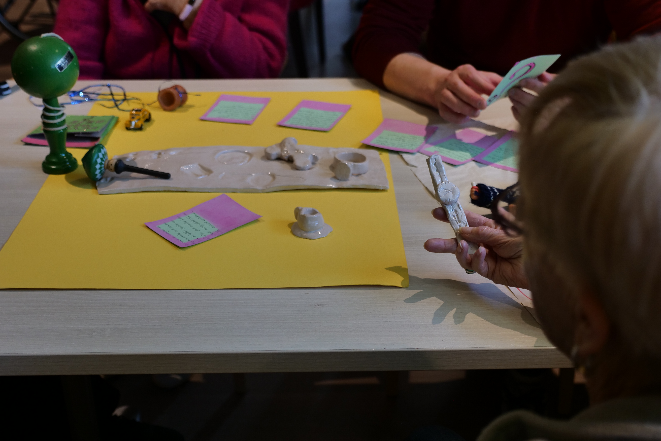 Le projet de la pièce manquante était une porte ouverte à la création de dispositif ludique. Les futurs professionnel s’en sont emparés pour créer des déclinaisons de jeu autour du partage de souvenirs de rencontre d’objets, d’odeurs et de personnes. Dérivé de jeu avec les pièces manquantes refabriquées.