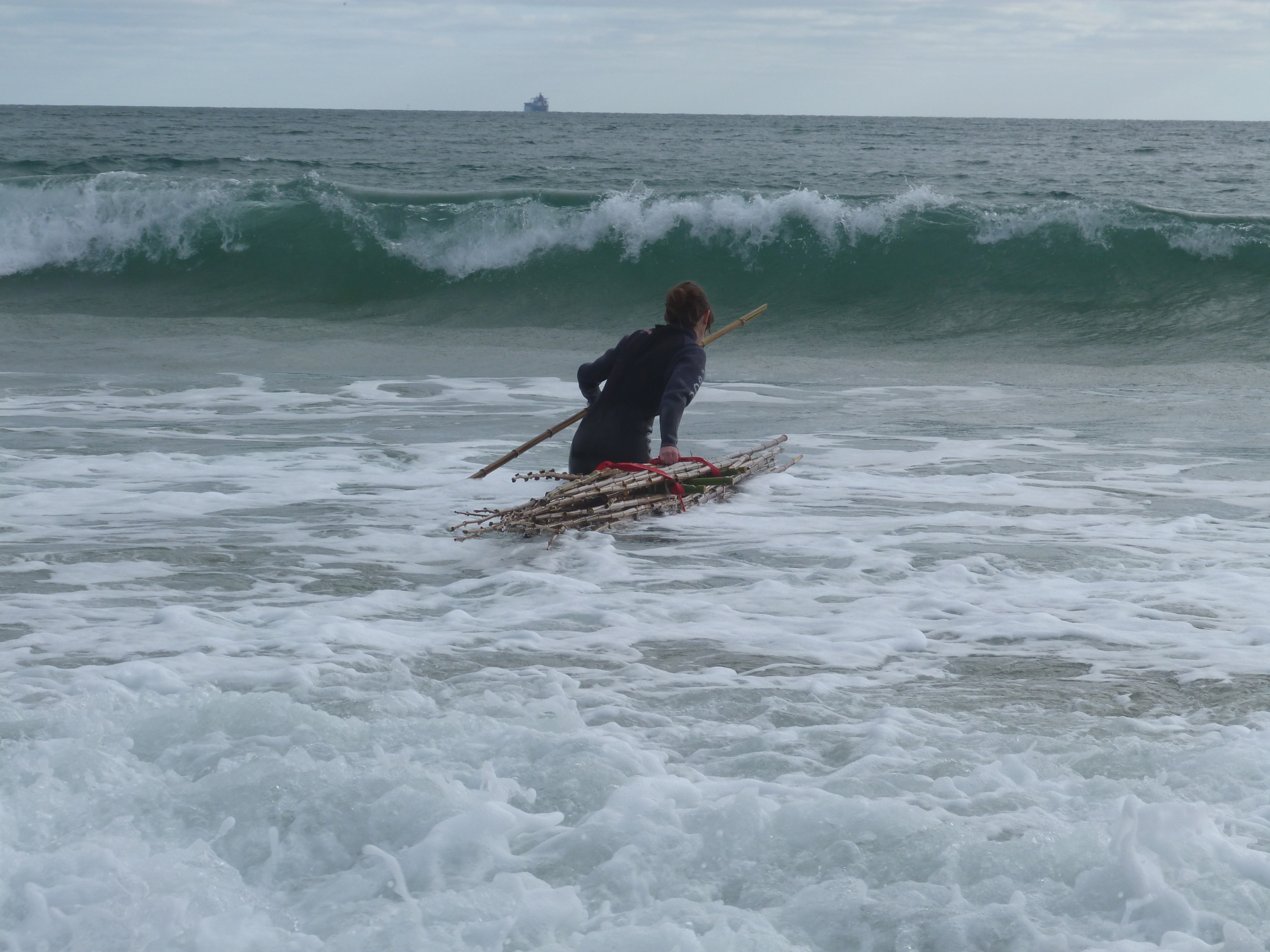 La temporalité courte de ces ateliers nécessitant rapidité de réflexion et d’exécution, nous a amené à questionner l’accessibilité de la matière première. Après avoir trouvé du bambou à proximité de la côte, le collectif c’est établis un camp pour expérimenter assemblage et stabilité.