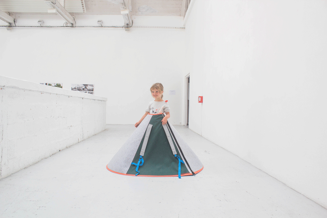 Le volcan prend la forme d’un tapis moelleux où l’on peut s’allonger, mais son relief dynamique annonce déjà un réveil imminent. Grâce à une fermeture éclair, il peut se transformer en cône, invitant à s’y glisser pour déclencher une éruption de jeux à inventer.